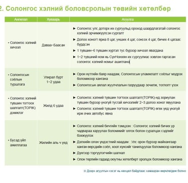 Солонгос хэлний хичээл нь 1 жилд 4 улирлаар явагддаг бөгөөд, нэг улирал нь долоо хоногт 5 өдөр, 10 долоо хоног, 200 цагаар явагддаг юм.
