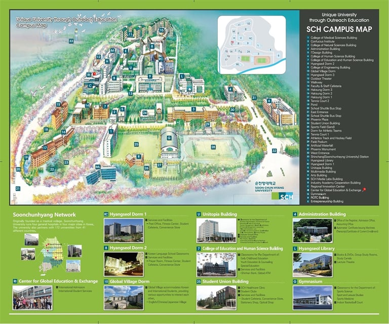 Soonchunhyang их сургууль нь эрдэм шинжилгээний болон оюутны амьдралыг дэмжих зориулалттай орчин үеийн, тохилог кампустай. Хотхон нь байгальд хүрээлэгдсэн тул амар тайван, аюулгүй орчинд суралцах боломжтой.